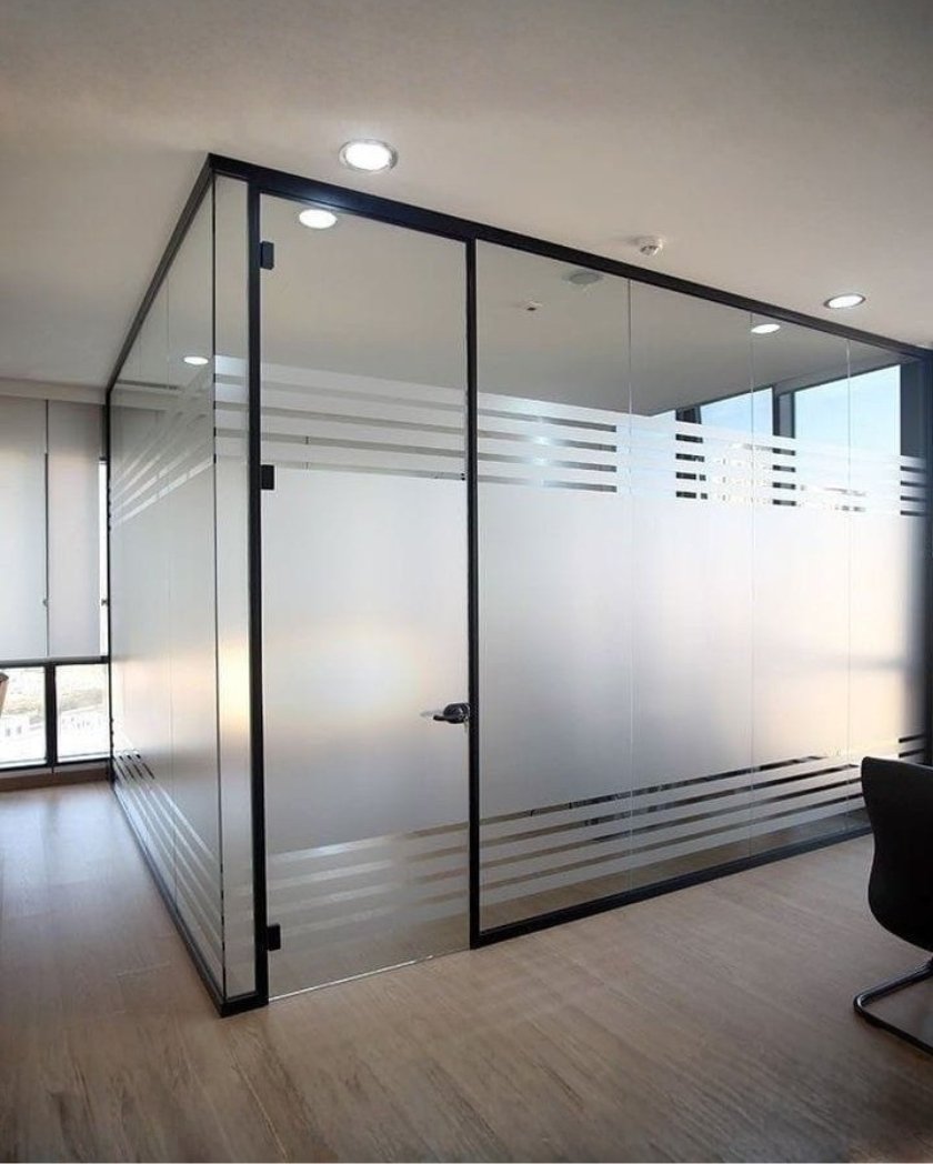 Switchable glass film that changes from transparent to opaque for instant privacy and modern functionality.