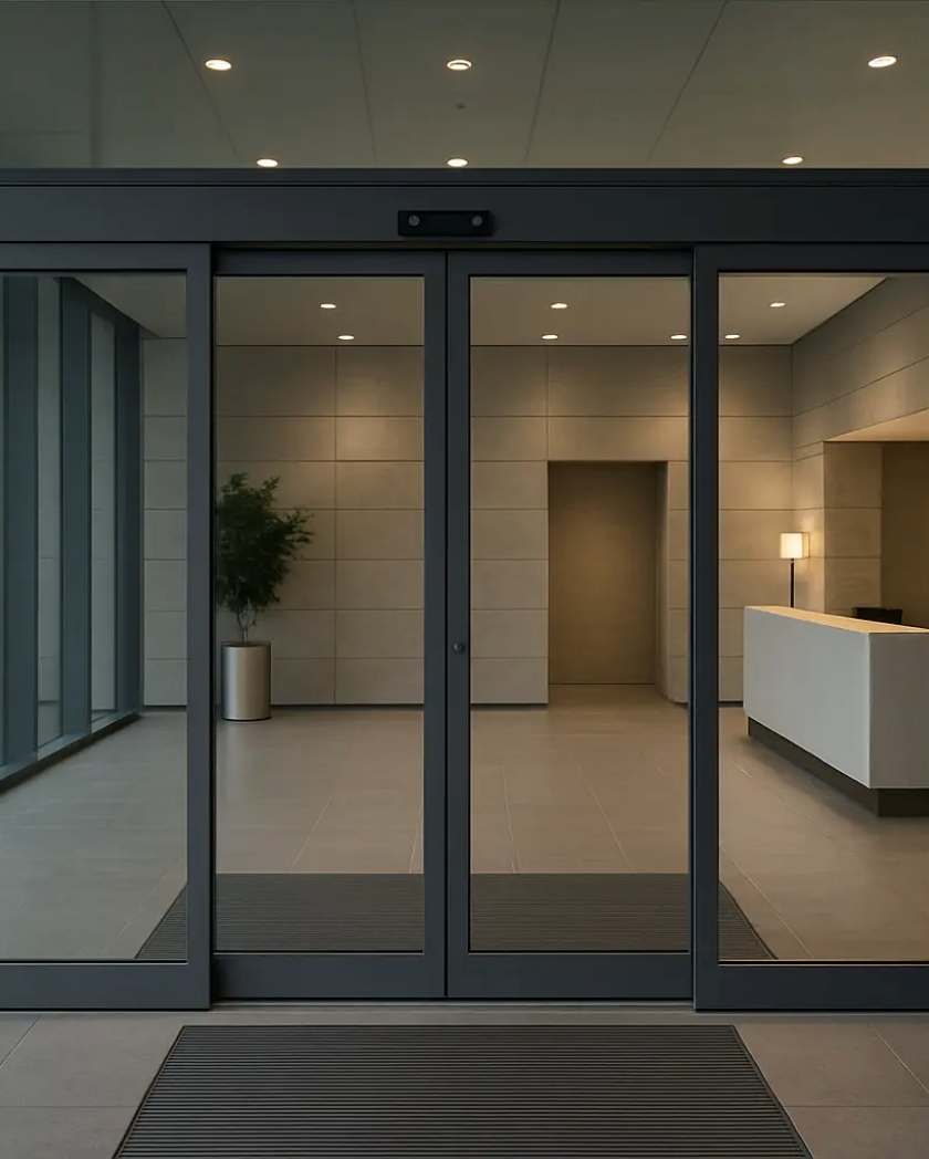 Sensor-operated sliding doors providing hands-free access, safety, and smooth traffic flow.