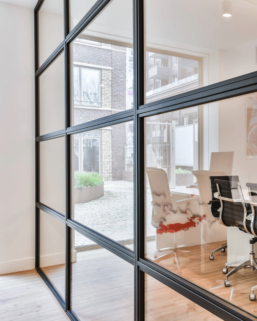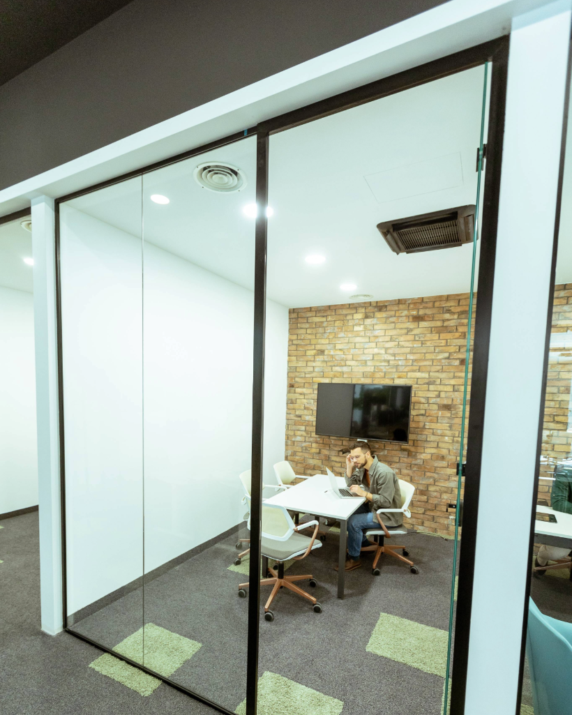 Our acoustic partitions are available in a variety of materials, including glass, wood, metal, and specialized acoustic panels. Each option is selected to balance sound absorption, durability, and aesthetics.